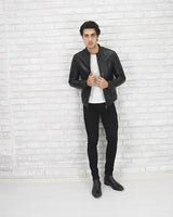 „Happy Gentleman B101“ – vyriška juoda natūralios odos baikerio striukė – aptempta